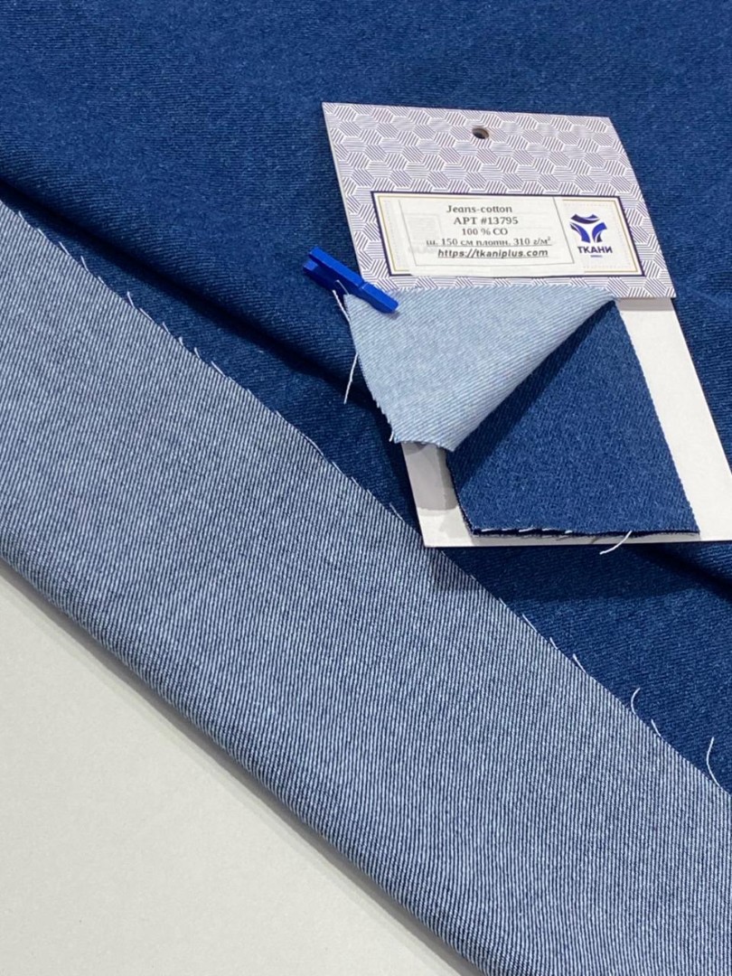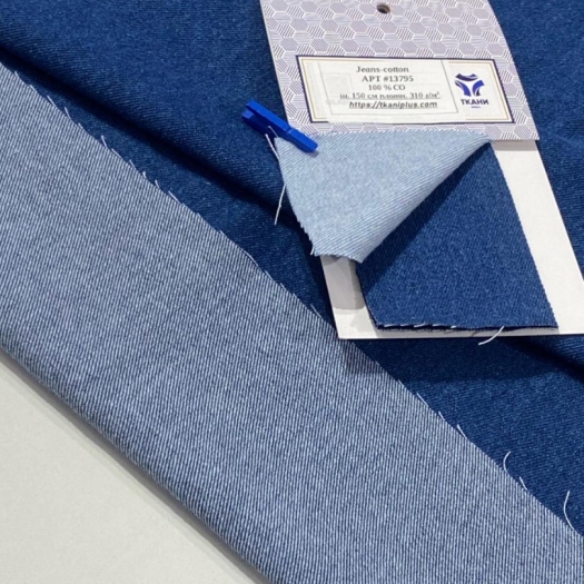 Джинс одна из самых комфортных, универсальных и надежных тканей, которая всегда остается актуальной и является одной из постоянных позиций нашего ассортимента. Ее узнаваемый диагональный рубчик, плотное саржевое переплетение и характерная текстура делают джинсу неповторимой, а уникальные свойства обеспечиваются использованием 100% хлопка. Наш Jeans Cotton плотностью 310 г/м² идеально подходит для пошива одежды самых разных стилей и фасонов. Классические джинсы, безусловно, вне конкуренции – они остаются символом удобства и стиля. Модные и практичные джинсовые брюки для повседневной жизни, прочные шорты, крутой бомбер, элегантный сарафан, платья в стиле сафари и не только, юбки, куртки, тренчи и даже для создания уникальных шопперов, сумок – все это наш Jeans Cotton, шириной 150 см. Одним словом: мы рекомендуем 13796