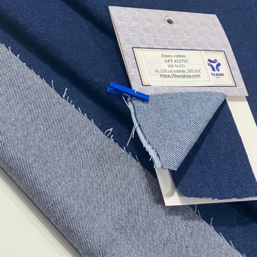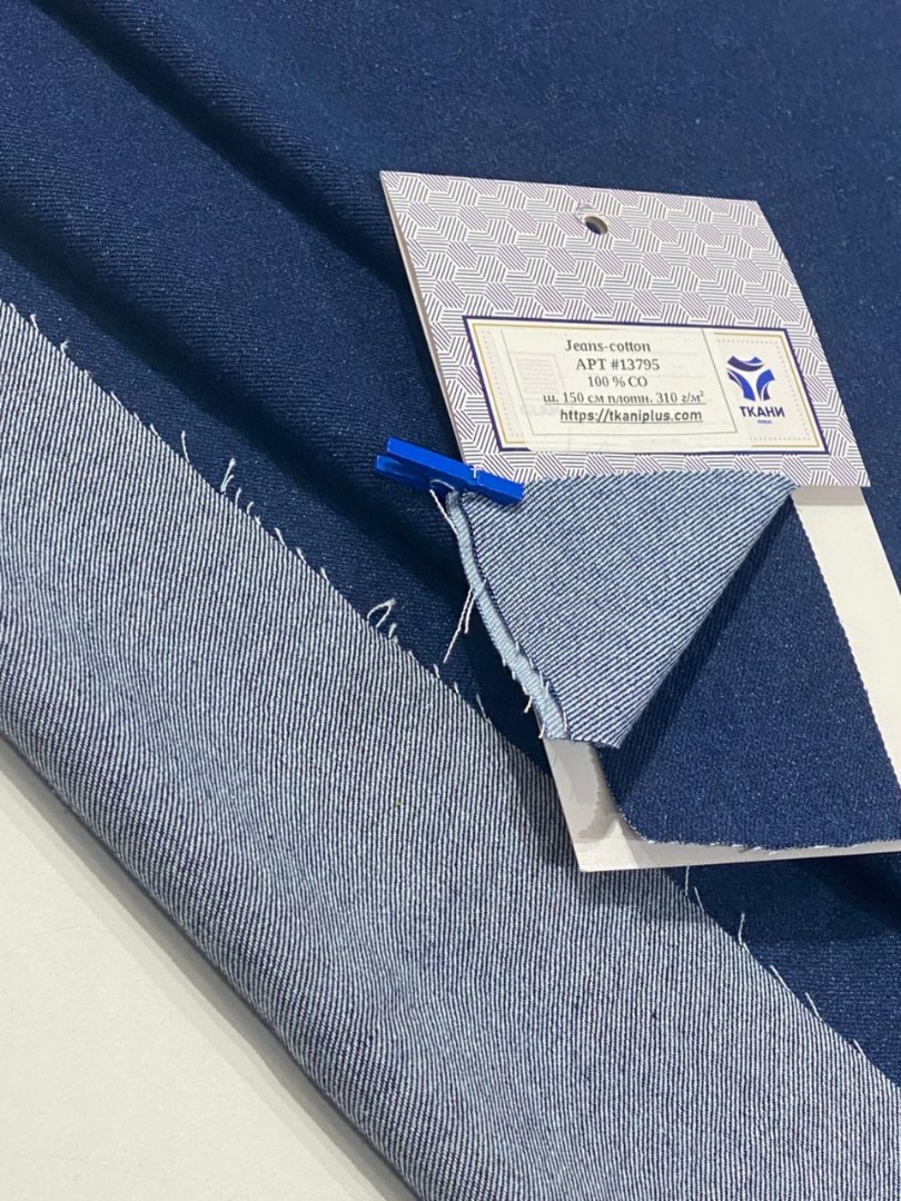 Джинс одна из самых комфортных, универсальных и надежных тканей, которая всегда остается актуальной и является одной из постоянных позиций нашего ассортимента. Ее узнаваемый диагональный рубчик, плотное саржевое переплетение и характерная текстура делают джинсу неповторимой, а уникальные свойства обеспечиваются использованием 100% хлопка. Наш Jeans Cotton плотностью 310 г/м² идеально подходит для пошива одежды самых разных стилей и фасонов. Классические джинсы, безусловно, вне конкуренции – они остаются символом удобства и стиля. Модные и практичные джинсовые брюки для повседневной жизни, прочные шорты, крутой бомбер, элегантный сарафан, платья в стиле сафари и не только, юбки, куртки, тренчи и даже для создания уникальных шопперов, сумок – все это наш Jeans Cotton, шириной 150 см. Одним словом: мы рекомендуем 13797