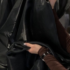 Тонкая ткань с красивыми переливами и с приятным блеском. Эта ткань практически не мнется, пластичная. Этот столь эффектный материал превосходно подходит для пошива концертных и вечерних нарядов, летних платьев, сарафанов и юбок, рубашек и блуз, топов, накидок, легких тренчей. Кроме того, из него шьют легкие свадебные аксессуары, подарочные упаковки и всевозможные предметы декора.13198