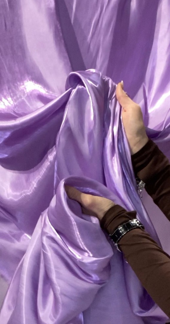 Тонкая ткань с красивыми переливами и с приятным блеском. Эта ткань практически не мнется, пластичная. Этот столь эффектный материал превосходно подходит для пошива концертных и вечерних нарядов, летних платьев, сарафанов и юбок, рубашек и блуз, топов, накидок, легких тренчей. Кроме того, из него шьют легкие свадебные аксессуары, подарочные упаковки и всевозможные предметы декора.13204