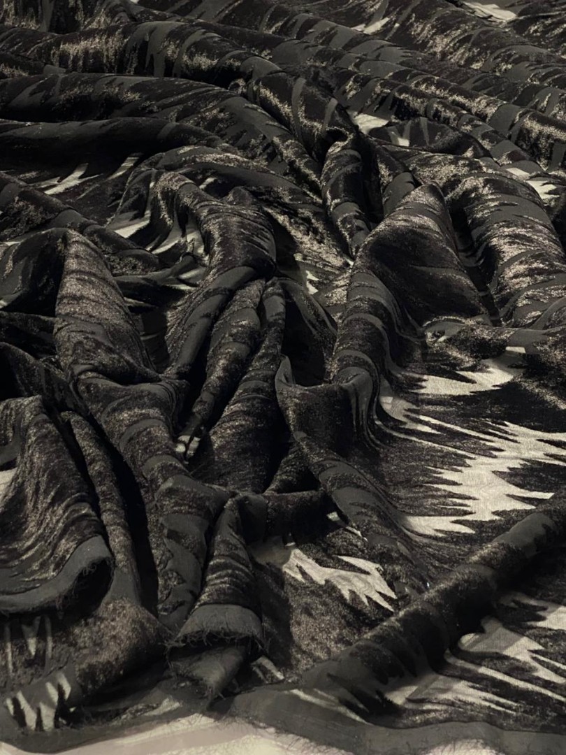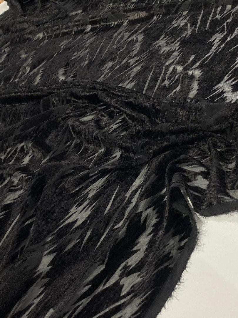 Панбархат на шифоне – изысканная нежность прикосновения и неповторимый блеск. Богатая, эффектная и торжественная ткань, обладающая глянцевым ворсовым узором на матовой основе Это идеальный вариант для создания роскошной и стильной одежды. Полотно прочное и долговечное, очень приятное на ощупь, что делает его идеальным для создания максимально комфортной одежды. Можно использовать панбархат для создания различных видов одежды: платье, блуза, юбка, брюки, жакет и др. Блеск прекрасно сочетается с любой тканью, это может быть шелк, шифон, кружево. Вы можете надеть на себя бархатную юбку, гармонично сочетающуюся с блузой или топом, или создать роскошный вечерний наряд, добавив декоративные элементы и недорогие аксессуары. 13399