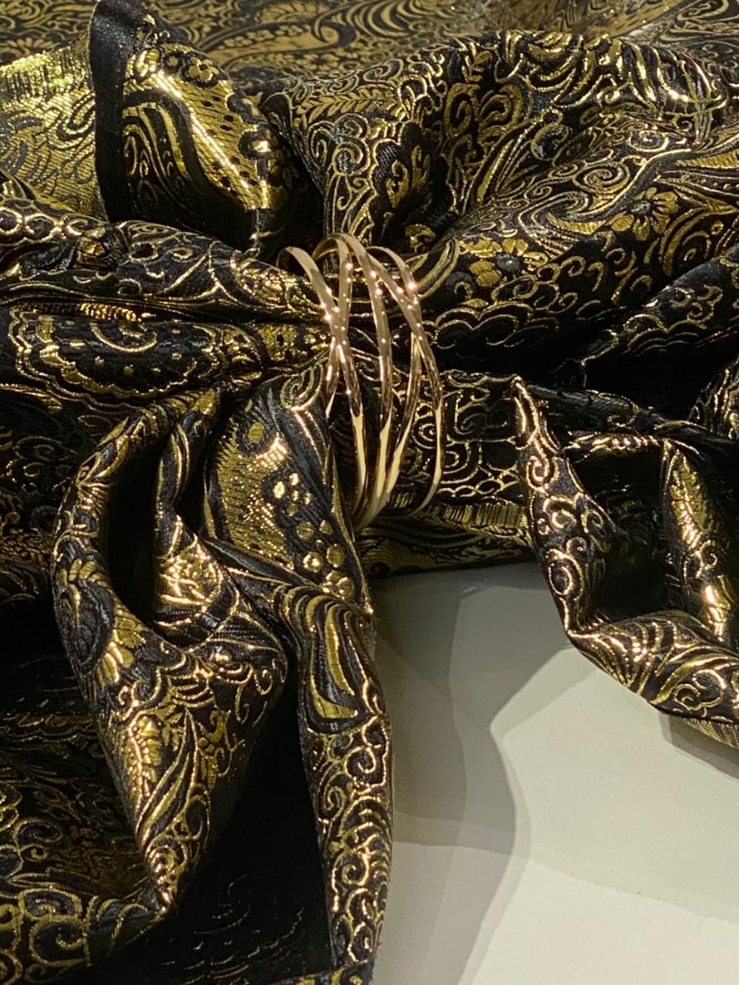 Парча-жаккард - идеальный вариант для создания элегантных, национальных, праздничных и театральных костюмов. Из этой ткани создавали одеяния для торжественных религиозных церемоний и придворных балов. Этот запоминающийся материал добавит шарма и роскоши любому наряду: платье, пиджак, костюм (в том числе новогодний), жакет, аксессуары и другие. Состав 100% полиэстер с метализированной нитью обусловит отличную износостойкость и устойчивость к выгоранию 12288