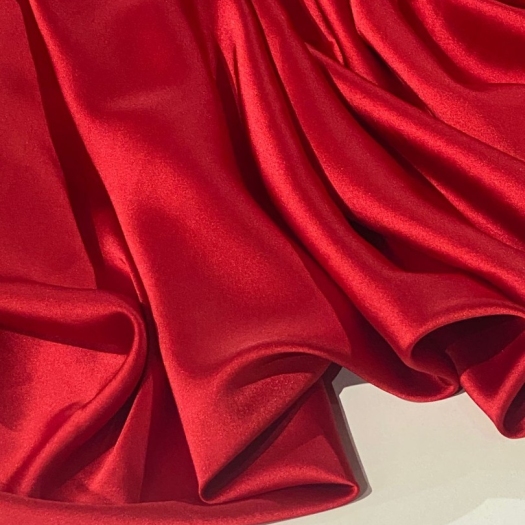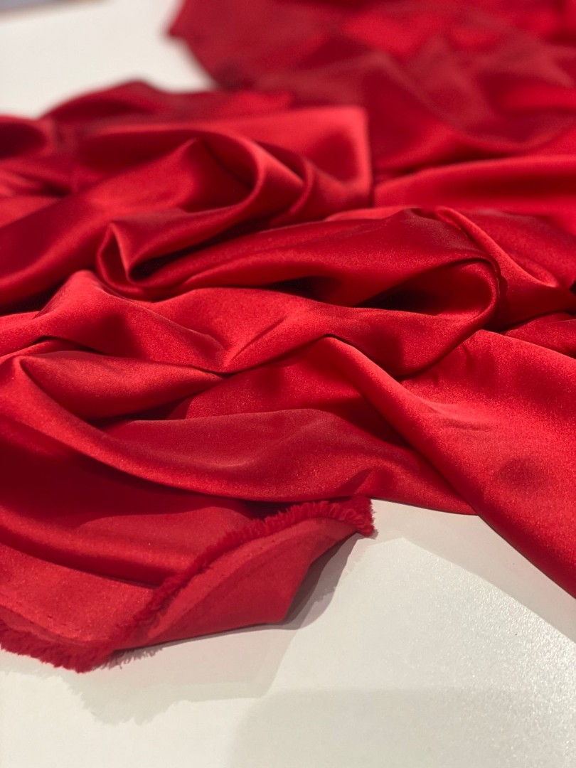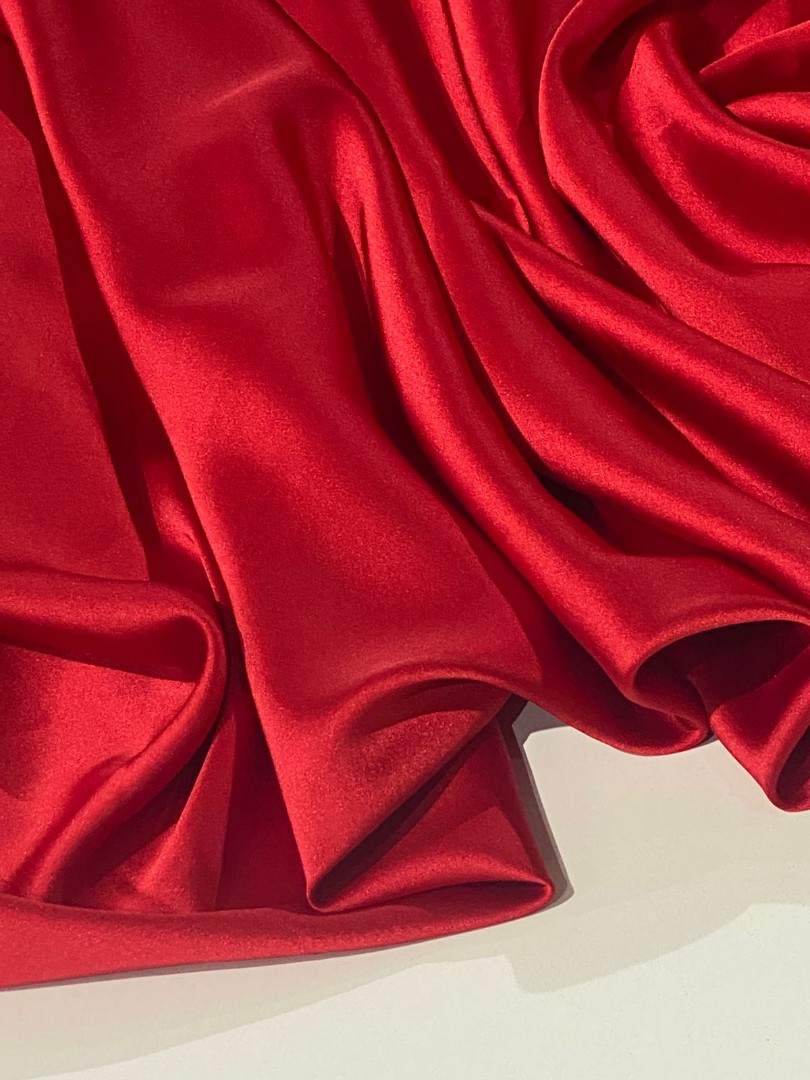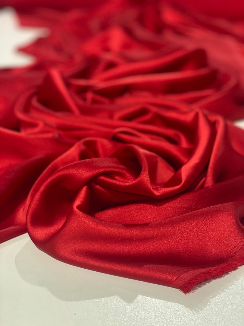 Сатин Скарлет - однотонная, тонкая, легкая шелковистая ткань с сатиновым, благородным отливом. Он красив, комфортен, прочен и долговечен, всегда сохраняет блеск и праздничный вид. Кроме всего прочего, обеспечивает безупречную посадку по фигуре за счет эластичности хорошо драпируется в красивые складки. Материал легко стирается и быстро сохнет. Идеально подходит для пошива нарядных платьев, стильных блузок и юбок, костюмов, брюк, топов и нижнего белья. Он красив и удобен в носке. 12978