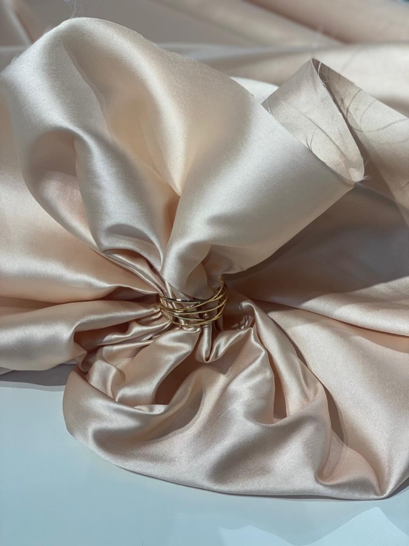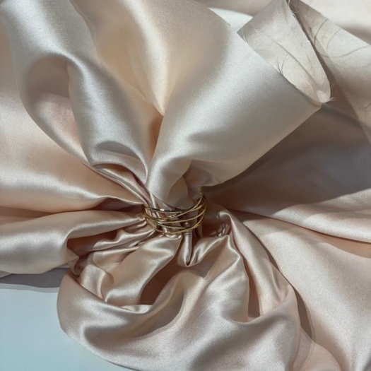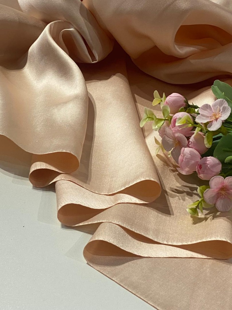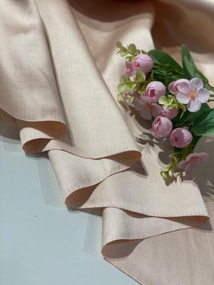 Сатин-твил Mikado наши покупатели используют для создания свадебных и вечерних платьев, праздничных нарядов, корсетов, платьев, юбок, жакетов и других модных изделий. Полотно имеет саржевое переплетение, его блеск и фактура делают его идеальным материалом для создания строгих и элегантных моделей. Его можно так же использовать для создания предметов интерьера, таких как подушки или занавески и т.д. Ткань двусторонная: с одной стороны имеет стеклянный блеск, с другой типичную фактуру для микадо - в рубчик. Можно использовать при пошиве любой стороной. Сатин хорошо держит форму, что делает его идеальным для создания объемных деталей и складок, он прочный и износостойкий. Несмотря на высокую плотность, материал невероятно легкий и приятный телу, легко драпируется. 13363