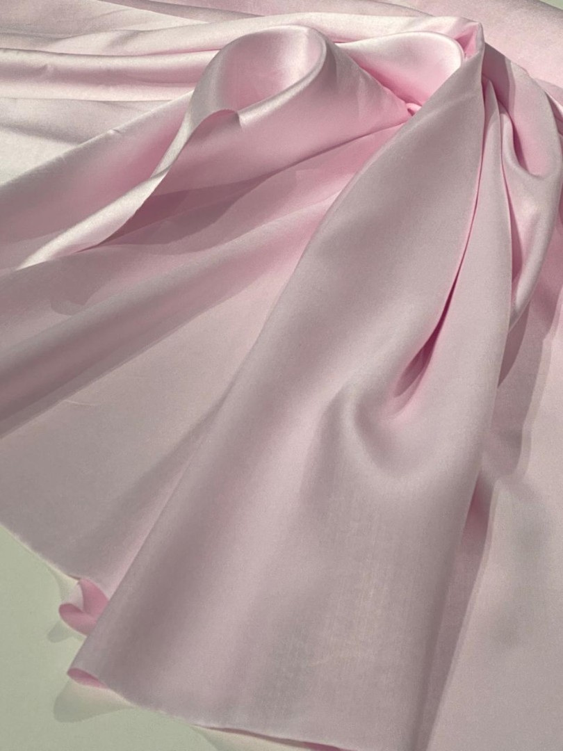 Сатин-твил Mikado наши покупатели используют для создания свадебных и вечерних платьев, праздничных нарядов, корсетов, платьев, юбок, жакетов и других модных изделий. Полотно имеет саржевое переплетение, его блеск и фактура делают его идеальным материалом для создания строгих и элегантных моделей. Его можно так же использовать для создания предметов интерьера, таких как подушки или занавески и т.д. Ткань двусторонная: с одной стороны имеет стеклянный блеск, с другой типичную фактуру для микадо - в рубчик. Можно использовать при пошиве любой стороной. Сатин хорошо держит форму, что делает его идеальным для создания объемных деталей и складок, он прочный и износостойкий. Несмотря на высокую плотность, материал невероятно легкий и приятный телу, легко драпируется. 13360