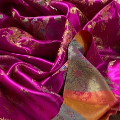 Рельефный сатин-жаккард пришел к нам еще с середины прошлого века. Роскошная ткань для пальто, жакета, жилета, торжественного платья, для национальных костюмов и сарафанов. У него актуальный цвет, который при необходимости легко комбинируется с другими оттенками, довольно высокий показатель прочности на разрыв благодаря особому переплетению и интересной фактуре. Его часто выбирают дизайнеры для своих коллекций. С полотном шириной 148 см легко работать вручную и на машинке. А его состав (100% полиэстер) обуславливает отличную износостойкость, устойчивость к выгоранию и сохранение эстетичности после чистки. Китай — в числе лучших мировых производителей качественных тканей, и мы поставляем их напрямую, не завышая цены. 13522