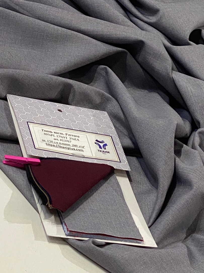 Костюмная ткань поливискоза — благородный материал, который удовлетворяет самым взыскательным требованиям. Смесовые материалы все больше завоевывают популярность у покупателей, так как сочетают в себе достоинства натуральных и синтетических волокон. Они прочны, не мнутся, гигроскопичны и комфортны в носке. Они меньше усаживаются при стирке, не так быстро изнашиваются и не теряют форму. Наша костюмная Ferrara имеет саржевое переплетение, тянется по поперечной нити, по долевой растяжения не имеет. 13772