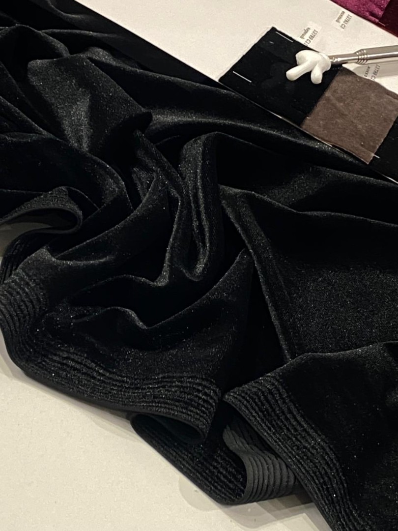 Велюр стр. Megan это универсальное, мягкое и эластичное полотно с роскошной бархатистой поверхностью, которая переливается на свету, создавая эффект глубины и благородного сияния. Материал обладает высокой прочностью, устойчивостью к истиранию и длительной сохранностью цвета. Добавление спандекса придаёт ткани отличную эластичность, обеспечивая комфортную посадку изделий и удобство в носке. Он легко поддаётся пошиву, прекрасно драпируется, не мнётся, что делает его популярным выбором для создания нарядной одежды, костюмов, сценических и танцевальных образов. Велюр Megan широко применяется для изготовления декоративного текстиля и аксессуаров. Он не прихотлив в уходе, не требует сложных методов чистки, быстро сохнет и сохраняет свою первоначальную структуру даже после многократных стирок. Это делает его отличным решением как для повседневного использования, так и для создания эффектных, стильных образов 13789