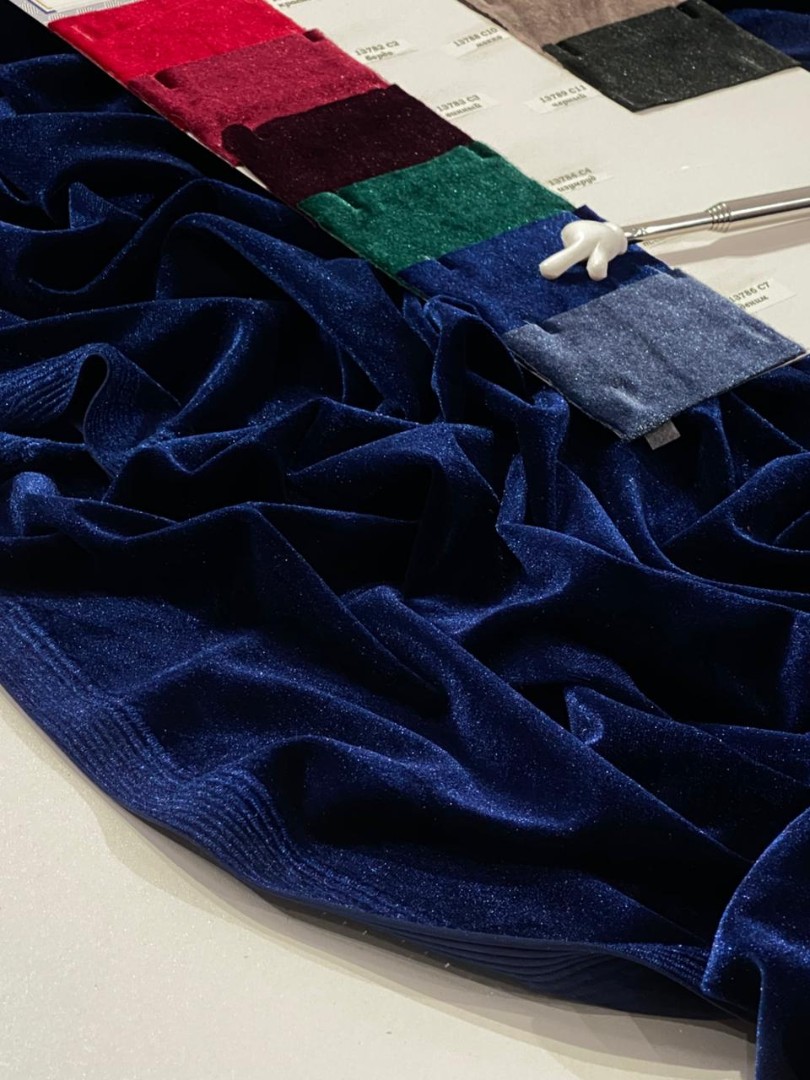 Велюр стр. Megan это универсальное, мягкое и эластичное полотно с роскошной бархатистой поверхностью, которая переливается на свету, создавая эффект глубины и благородного сияния. Материал обладает высокой прочностью, устойчивостью к истиранию и длительной сохранностью цвета. Добавление спандекса придаёт ткани отличную эластичность, обеспечивая комфортную посадку изделий и удобство в носке. Он легко поддаётся пошиву, прекрасно драпируется, не мнётся, что делает его популярным выбором для создания нарядной одежды, костюмов, сценических и танцевальных образов. Велюр Megan широко применяется для изготовления декоративного текстиля и аксессуаров. Он не прихотлив в уходе, не требует сложных методов чистки, быстро сохнет и сохраняет свою первоначальную структуру даже после многократных стирок. Это делает его отличным решением как для повседневного использования, так и для создания эффектных, стильных образов 13785