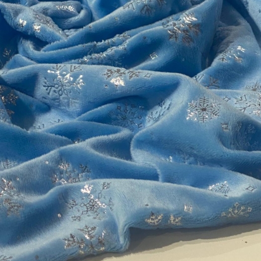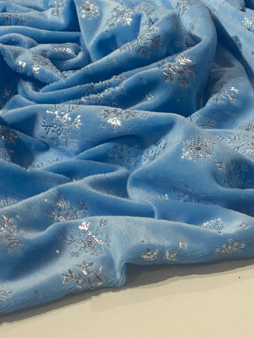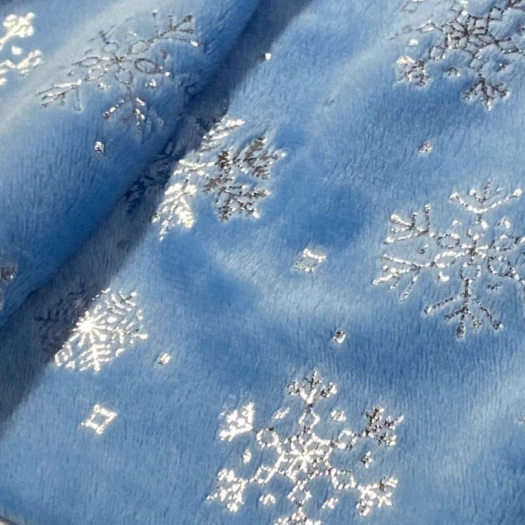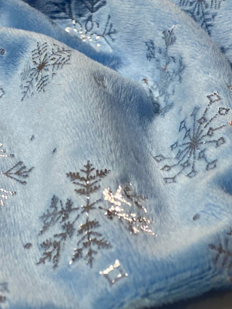 Мелковорсовый велюр Вельбоа с фольгированными снежинками — мягкая и нежная ткань, очень приятная на ощупь. Его еще называют искусственными плюшем за шелковистый ворс и крепкую основу. Очень похож на бархат. Идеально подходит для отделки и пошива различных изделий: пижамы кигуруми, новогодние костюмы, комбинезоны, брючки. Из вельбоа шьют одежду для кукол, подарочные мешочки, игрушки на елку и так далее. Полотно на трикотажной основе, незначительно тянется, легко шьется, не требует специального ухода, так как основа не сыпется. Внимание!!! Гладим на средней температуре с изнаночной стороны. 13297