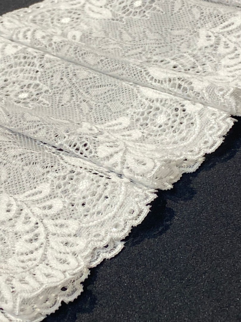 Кружево стрейч, созданное в Республике Корея, отличается высоким качеством и долговечностью. Это идеальный выбор для тех, кто ценит элегантность, комфорт. Можно использовать его для самых разнообразных швейных проектов, что придаст любому изделию романтический и утончённый вид. Этот вид текстиля идеально подойдет для создания эксклюзивного нижнего белья, одежды и аксессуаров. Важной особенностью является эластичность, благодаря которой ткань удобно использовать при пошиве изделий, требующих хорошей растяжимости и адаптации к форме тела. 9873