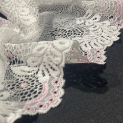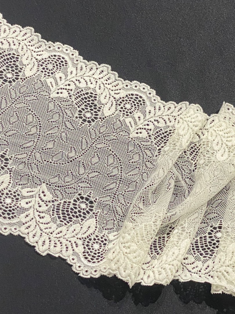 Кружево стрейч, созданное в Республике Корея, отличается высоким качеством и долговечностью. Это идеальный выбор для тех, кто ценит элегантность, комфорт. Можно использовать его для самых разнообразных швейных проектов, что придаст любому изделию романтический и утончённый вид. Этот вид текстиля идеально подойдет для создания эксклюзивного нижнего белья, одежды и аксессуаров. Важной особенностью является эластичность, благодаря которой ткань удобно использовать при пошиве изделий, требующих хорошей растяжимости и адаптации к форме тела. 9875