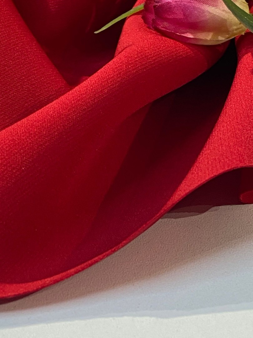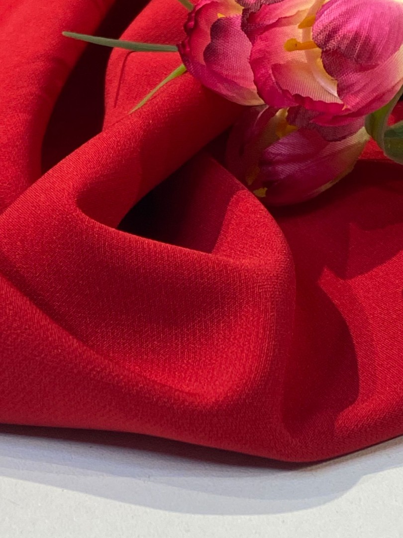 При производстве креп-твила создатели стремились получить очень прочную ткань, а главное, долговечную. И надо сказать, у них это получилось. Костюмный креп Fine Twill отлично подходит для создания изделий для нашего гардероба: жакет, платье, деловой костюм, брюки, юбка и др. Полотно имеет гладкую, слегка фактурную матовую поверхность хорошо драпируется, немного тянется по долевой и поперечной нити. Лицевая сторона в небольшой диагональный рубчик, изнаночная - мягкая, приятная на ощупь. Тактильно напоминает креп Барби, но чуточку плотнее - 270 г/м2, (Барби 190 грамм) более формоустойчив, неприхотлив в уходе, износостойкий. При сборке добавит объем, за счет плотности и упругости полотна. 13083
