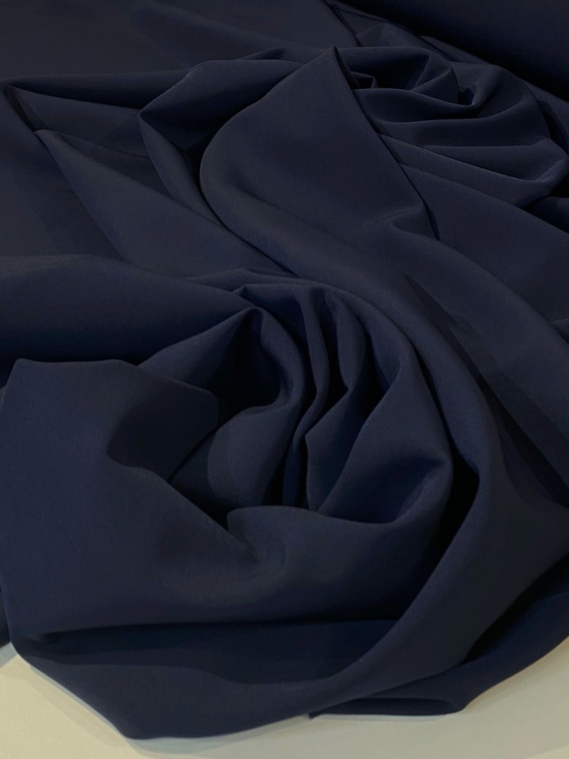 При производстве креп-твила создатели стремились получить очень прочную ткань, а главное, долговечную. И надо сказать, у них это получилось. Костюмный креп Fine Twill отлично подходит для создания изделий для нашего гардероба: жакет, платье, деловой костюм, брюки, юбка и др. Полотно имеет гладкую, слегка фактурную матовую поверхность хорошо драпируется, немного тянется по долевой и поперечной нити. Лицевая сторона в небольшой диагональный рубчик, изнаночная - мягкая, приятная на ощупь. Тактильно напоминает креп Барби, но чуточку плотнее - 270 г/м2, (Барби 190 грамм) более формоустойчив, неприхотлив в уходе, износостойкий. При сборке добавит объем, за счет плотности и упругости полотна. 13080