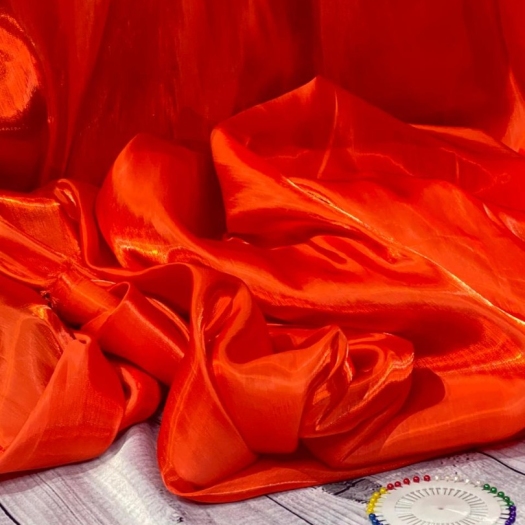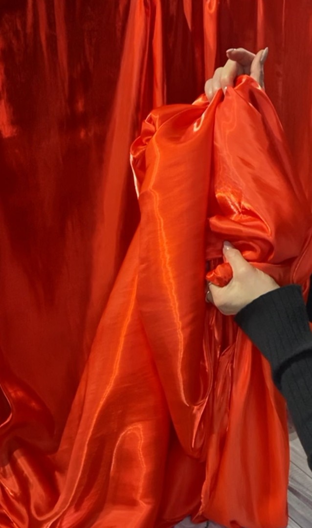 Тонкая ткань с красивыми переливами и с приятным блеском. Эта ткань практически не мнется, пластичная. Этот столь эффектный материал превосходно подходит для пошива концертных и вечерних нарядов, летних платьев, сарафанов и юбок, рубашек и блуз, топов, накидок, легких тренчей. Кроме того, из него шьют легкие свадебные аксессуары, подарочные упаковки и всевозможные предметы декора.13206