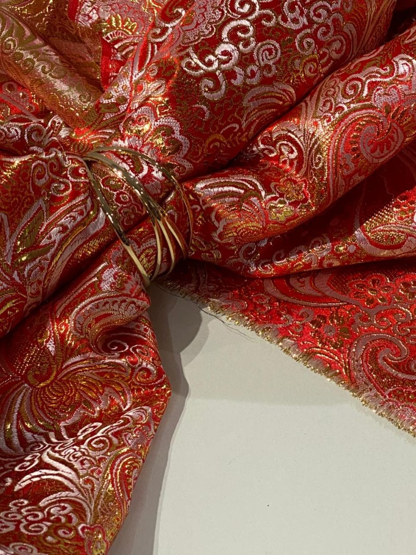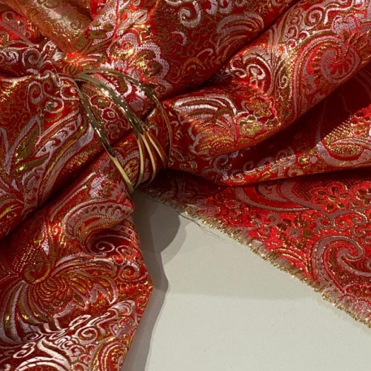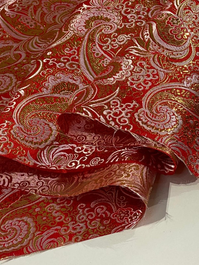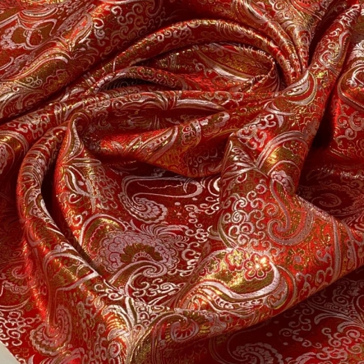 Парча-жаккард - идеальный вариант для создания элегантных, национальных, праздничных и театральных костюмов. Из этой ткани создавали одеяния для торжественных религиозных церемоний и придворных балов. Этот запоминающийся материал добавит шарма и роскоши любому наряду: платье, пиджак, костюм (в том числе новогодний), жакет, аксессуары и другие. Состав 100% полиэстер с метализированной нитью обусловит отличную износостойкость и устойчивость к выгоранию 12288