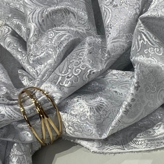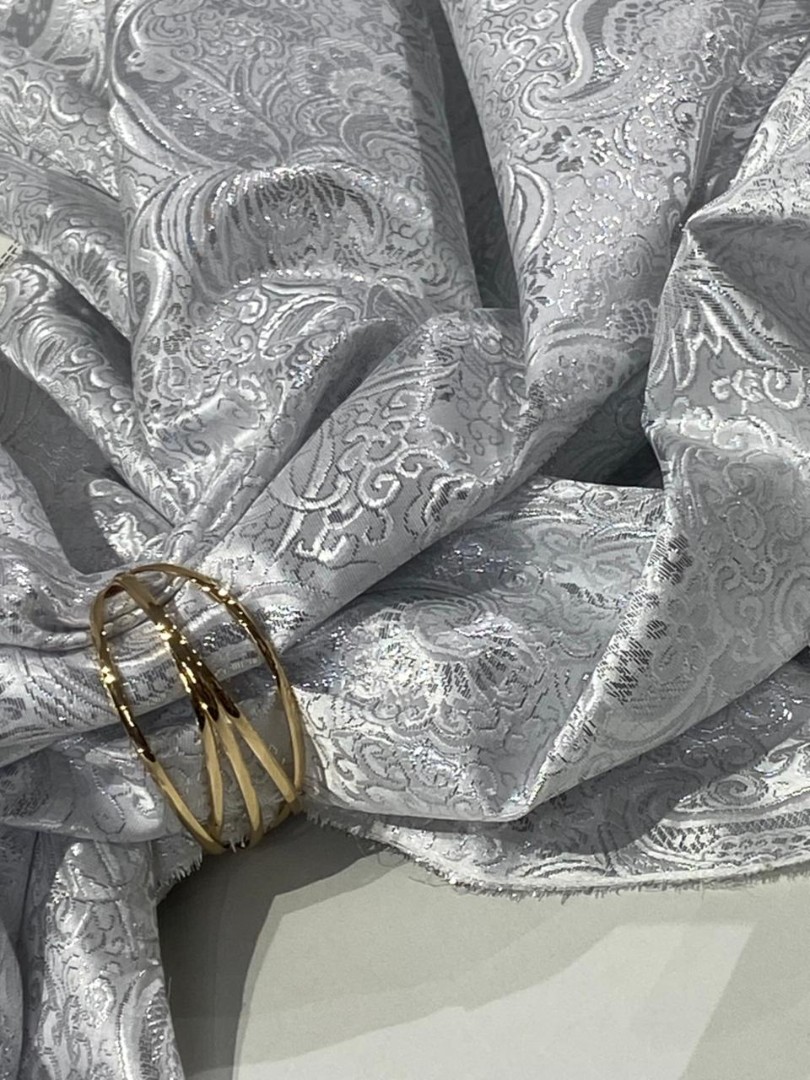 Парча-жаккард - идеальный вариант для создания элегантных, национальных, праздничных и театральных костюмов. Из этой ткани создавали одеяния для торжественных религиозных церемоний и придворных балов. Этот запоминающийся материал добавит шарма и роскоши любому наряду: платье, пиджак, костюм (в том числе новогодний), жакет, аксессуары и другие. Состав 100% полиэстер с метализированной нитью обусловит отличную износостойкость и устойчивость к выгоранию 12288