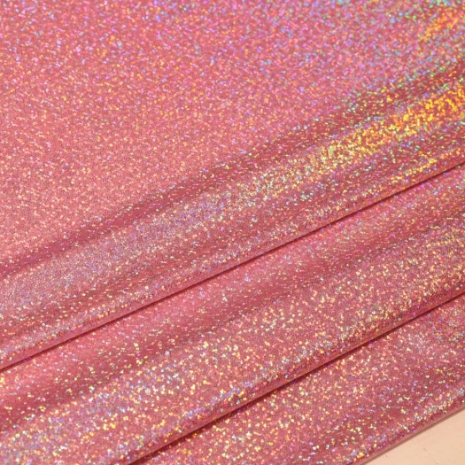 Трикотаж голограмма – яркая, блестящая, переливающаяся и мерцающая ткань из разряда «Диско». Слегка эластична с голографическим эффектом, отлично садится по фигуре. Из него создают необычные и запоминающиеся модели - платья, юбки, жакеты, танцевальные и сценические варианты, декор. Рисунок может быть крупным (наподобие чешуи) и мелким, как напыление. Состав полностью синтетический – полиэстер и эластан. Основа у полотна шелковистая, приятная к телу, можно шить и без подкладки. Материал не просвечивает, интенсивно играет на свету. Смотрится сногсшибательно, нарядно. 12440