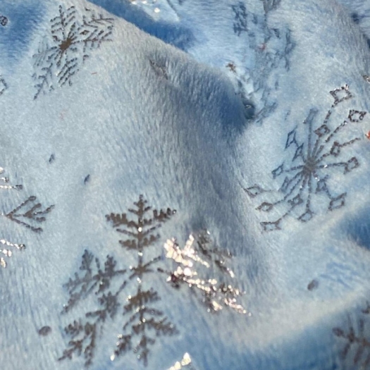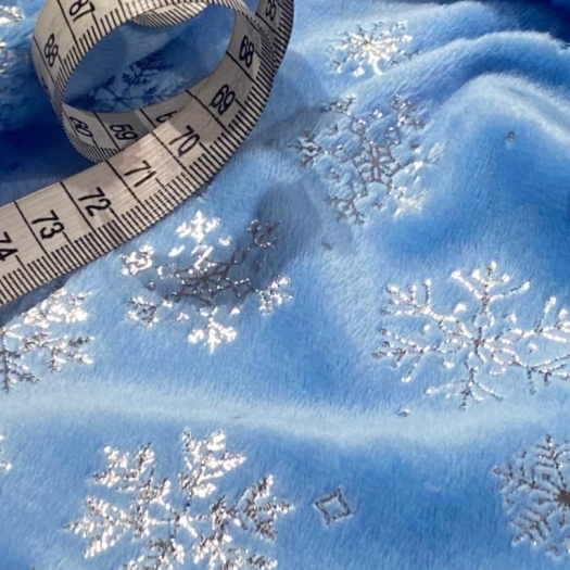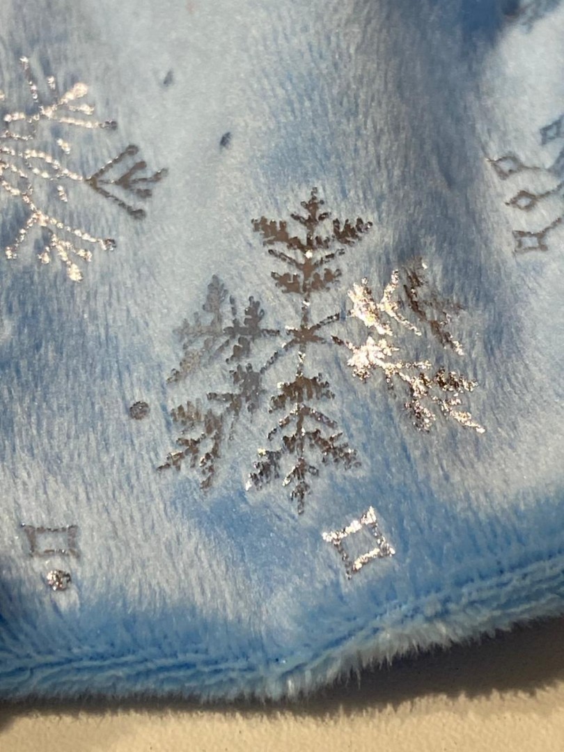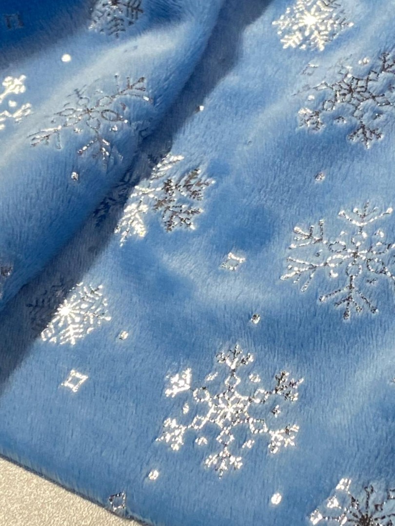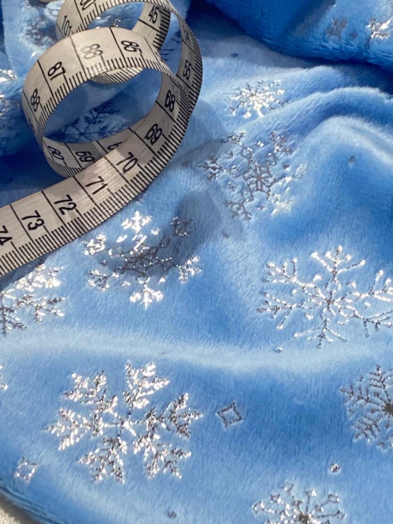 Мелковорсовый велюр Вельбоа с фольгированными снежинками — мягкая и нежная ткань, очень приятная на ощупь. Его еще называют искусственными плюшем за шелковистый ворс и крепкую основу. Очень похож на бархат. Идеально подходит для отделки и пошива различных изделий: пижамы кигуруми, новогодние костюмы, комбинезоны, брючки. Из вельбоа шьют одежду для кукол, подарочные мешочки, игрушки на елку и так далее. Полотно на трикотажной основе, незначительно тянется, легко шьется, не требует специального ухода, так как основа не сыпется. Внимание!!! Гладим на средней температуре с изнаночной стороны. 13297